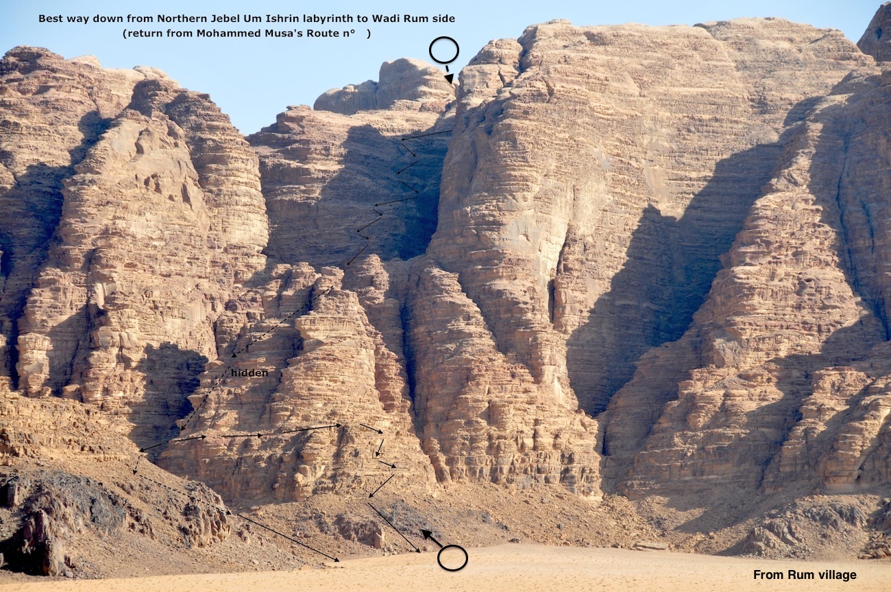 – Bedouin Route on the NW gully of Um Hajaj, South summit – to Mohammed Musa’s Route.