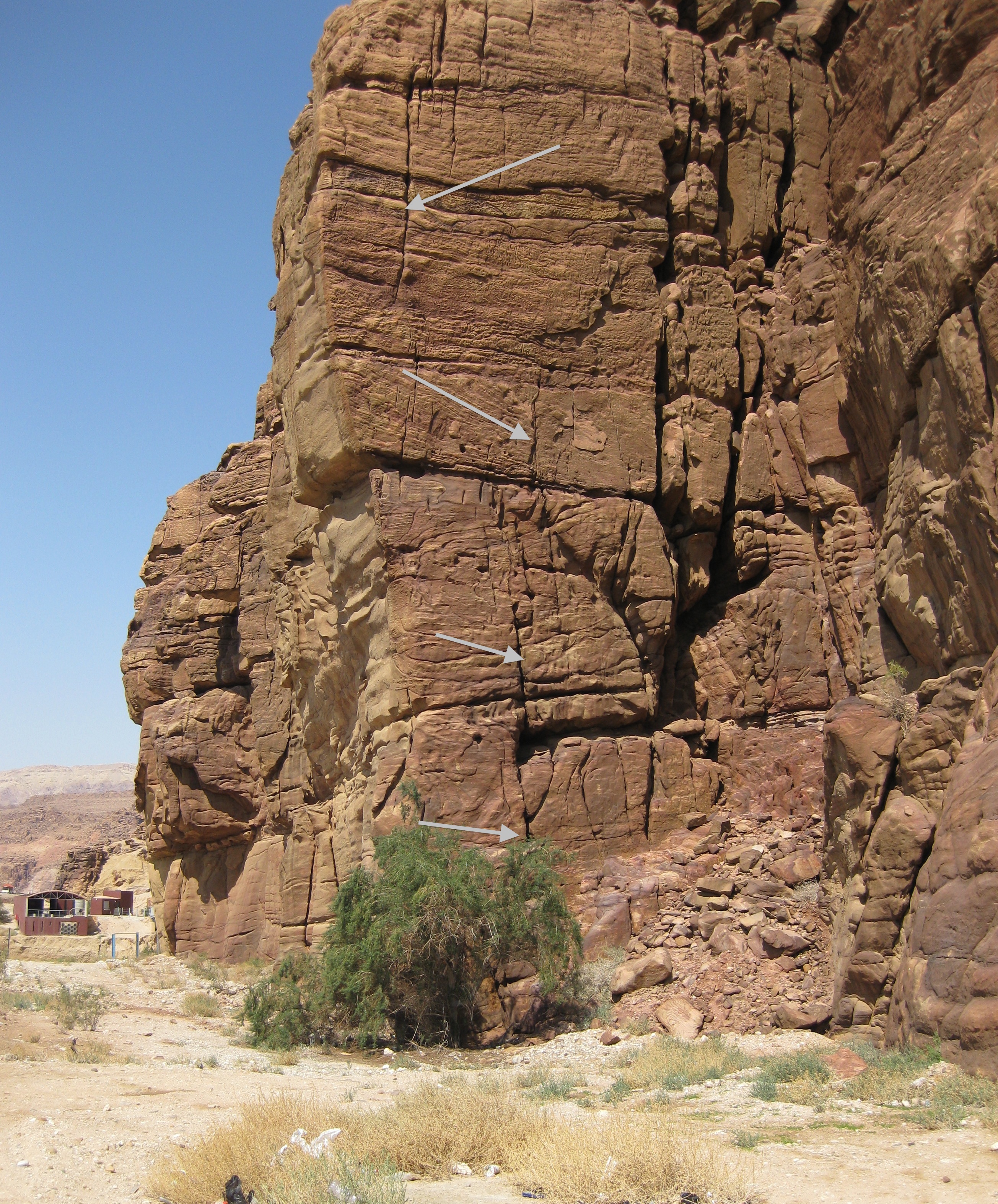 It is on the shores of the Dead Sea, 410 meters below sea level, and is rated 6b/c for about 20 meters high. It is just on the crag next to the Mujib Bridge, in Jordan.