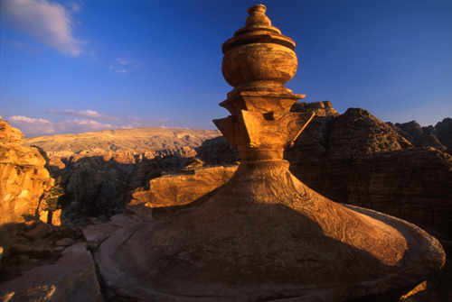 d’alimentation de la cité aux beaux jours des royaumes nabatéens et byzantins. Après le passage aux tombeaux royaux nous monterons au lieu-dit « du Monastère », au temple du Deir et son belvédère aérien qui domine les précipices volcaniques dévalant vers le Wadi Araba, là-bas tout en bas. Sortie au Nord, par une porte dérobé dans la montagne. Il nous permet de rejoindre les sites de Beidha la néolithique, et celui du Siq al Barid, antérieur à Petra.